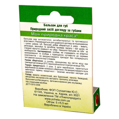 Спосіб застосування: наносити бальзам для губи в міру необхідності.